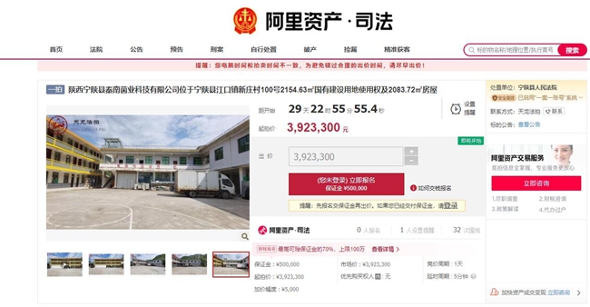 陜西寧陜縣秦南菌業(yè)科技有限公司位于寧陜縣江口鎮(zhèn)新莊村100號(hào),標(biāo)的物土地使用權(quán)性質(zhì)為出讓,用途為工業(yè)用地,宗地面積2154.63平方米,使用期限為2008年12月1日起2058年11月30日止。房屋總建筑面積為2083.72平方米,共3幢房屋,1幢房屋結(jié)構(gòu)為磚木結(jié)構(gòu),占地面積56.140平方米,建筑面積56.140平方米,用途為綜合用房。2幢房屋結(jié)構(gòu)為混合結(jié)構(gòu),占地面積502.390平方米,建筑面積1036.760平方米,其中第一層290.93平方米為車間,第二層400.05平方米為車間辦公,第二層345.78平方米為商業(yè)用房。3幢房屋結(jié)構(gòu)為混合結(jié)構(gòu),占地面積311.840平方米,建筑面積為990.820平方米,用途為綜合用房。
